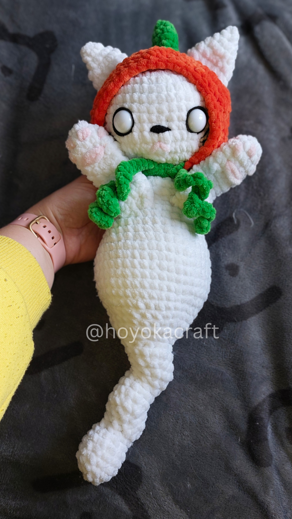 This is a crochet pattern to make your own Ghost kitty with a pumpkin hat (ideal for Halloween). The Pumpkin hat is removable and interchangeable with the hats from the other "animals with hats" patterns. Pattern is in English only and contains detailed pictures of the process. Additionally, I will gladly answer any of your questions about the pattern, if anything is unclear.